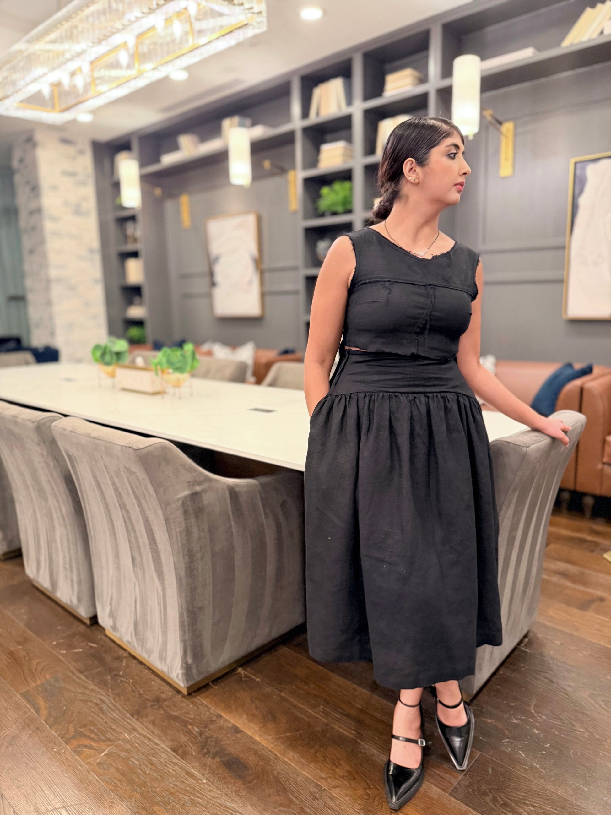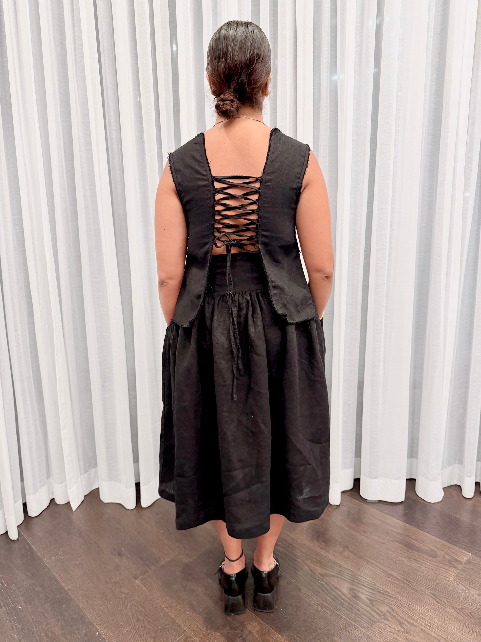 Fabric/Material:100% Linen for a structured feel, beautiful drape, and breathable comfort.